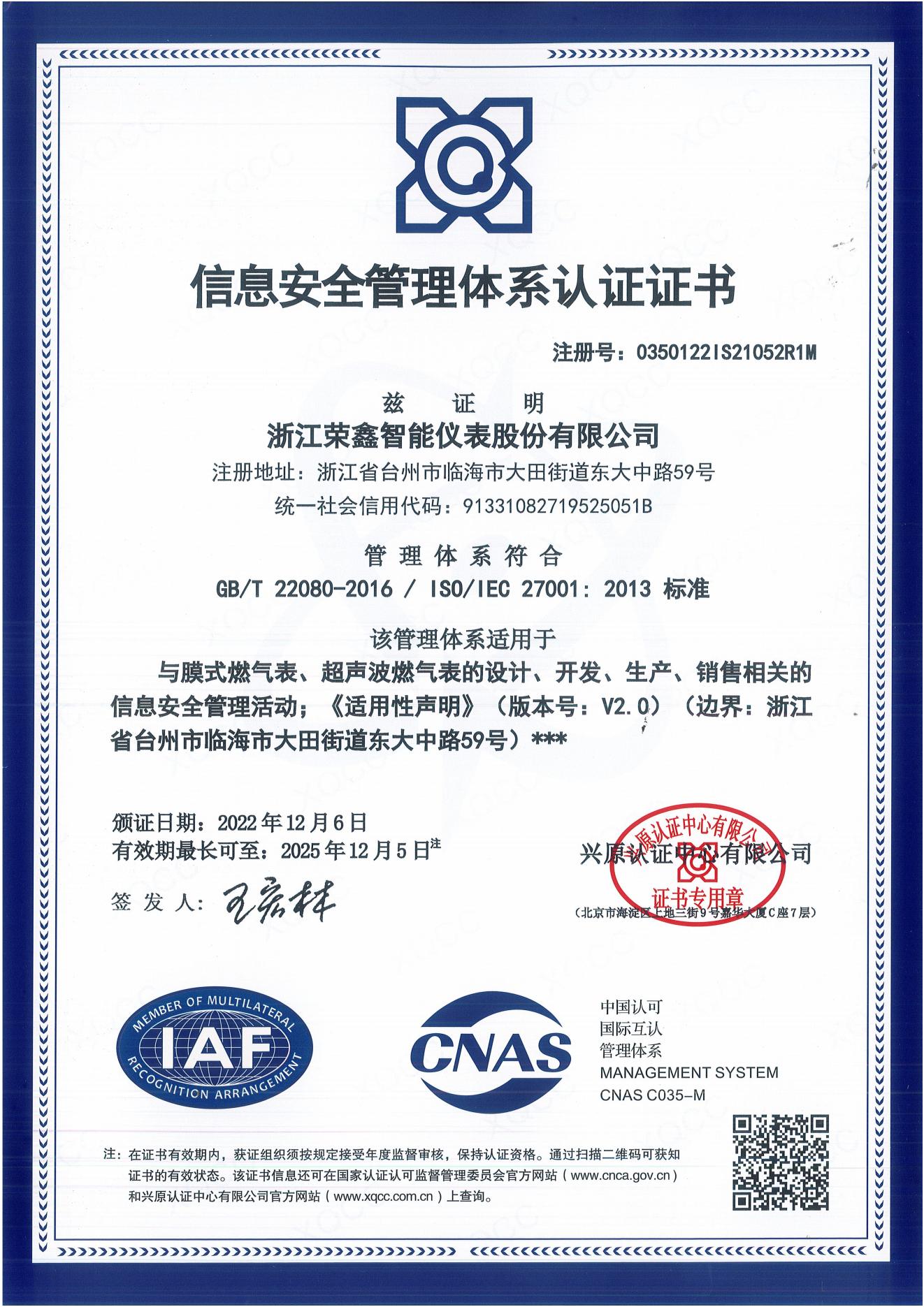 信息安全管理体系认证证书2024-05-31 -
